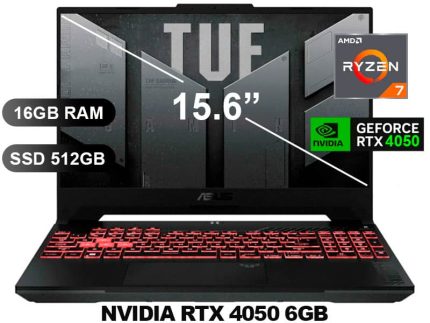 Características de LAPTOP ASUS TUF GAMING FA507NU-LP031 GeForce RTX™ 4050 R7-7735HS/ 16GB/ SSD512GB/V6GB/15.6/FREE