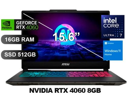 LAPTOP MSI GAMING CYBORG 15 AI A1VFK-CU7 ULTRA7 16GB SSD512GB RTX4060-8GB W11H